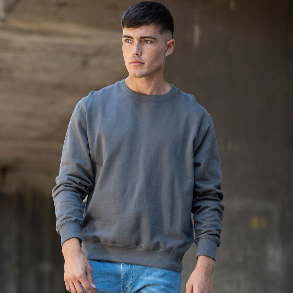 Měkká bavlněná mikina bez kapuce s kulatým výstřihem. Hladký a teplý materiál zevnitř zajišťuje pohodlné nošení jak v období tepla, tak i v zimě. Prát naruby při 30°C.